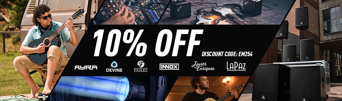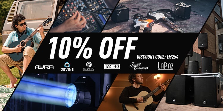 Always dreamed of owning a banjo, a classical guitar, a wireless microphone system, a smoke machine or a flight case for your accessories? Fazley, Devine, Ayra, Innox, Javier Enriques and LaPaz offer everything that musicians, DJs, producers, and lighting and sound engineers need, all for an unbeatable price. Use discount code EM254 in your basket and get 10% off.