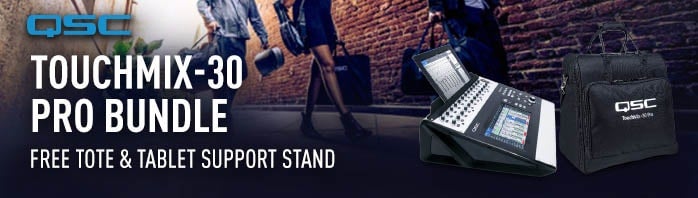 When it comes to digital mixers, the Touchmix-30 Pro by QSC is beyond compare. Now, when you purchase the Touchmix-30, you'll receive a TS-1 tablet stand and a Tote, free of charge! Get this complete set before 31st December, 2017, and get your DJ career off to a flying start!