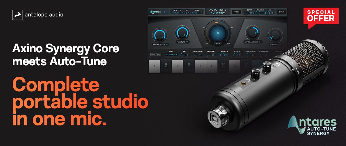 Free Antares Auto-Tune Plug-in with Every Axino Synergy CoreThe go-to when it comes to correcting and polishing up vocals for decades, Antares Auto-Tune offers fast, professional results while retaining the natural, organic quality of the vocal performance - if that's what you're aiming for, of course. Now, this incredibly popular production tool comes as a sweet freebie on the side when you buy an Antelope Audio Axino Synergy Core recording system. How Does it Work?Once you've got your Axino recording system, simply register it via the Antelope Audio website and the Antelope Launcher software - a straightforward procedure that's clearly explained on their site and in the user manual that'll come with your Axino Synergy Core. Note! Make sure to get your Axino registered on or before the 15th of June, 2022, otherwise you'll risk missing out on this monster deal. Related brandsRelated products |