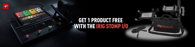 IK Multimedia has another great offer for you! If you've had your eye on the iRig Stomp I/O, now's a good time to buy one because you can choose a free gift to go with it. Read on to find out more. |