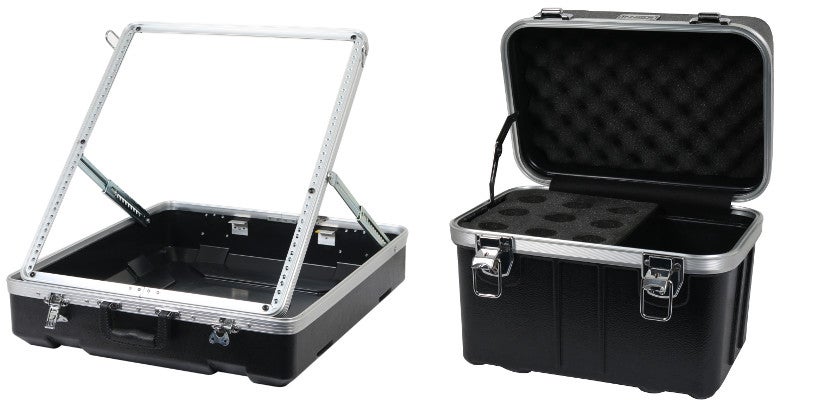 The mixer case and the microphone case are also made of ABS. The mixer case offers 12U of rack space and the mixer can be tilted inside the case to a comfortable angle. The microphone case has room for 9 microphones as well as accessories and it comes with a thick layer of foam for optimal protection.