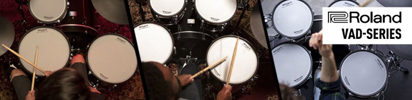 The Roland VAD Series currently includes three drum kits: the VAD506, the VAD503 and the VAD306. Let's quickly go over the biggest differences. The VAD506 is essentially the flagship model here and boasts a full configuration including three toms and four cymbal pads. The VAD503 comes with one less rack tom and crash-pad, but both kits do feature a TD-27 drum module and a most impressive 18" CY-18DR ride cymbal. Lastly, the VAD306 is the more budget-friendly model of the series and, as such, includes slightly smaller shells. That means you're still getting three toms and four cymbal pads, but the drum module has been swapped for a TD-17 while the CY-18DR crash-pad remains exclusive to the two other kits.