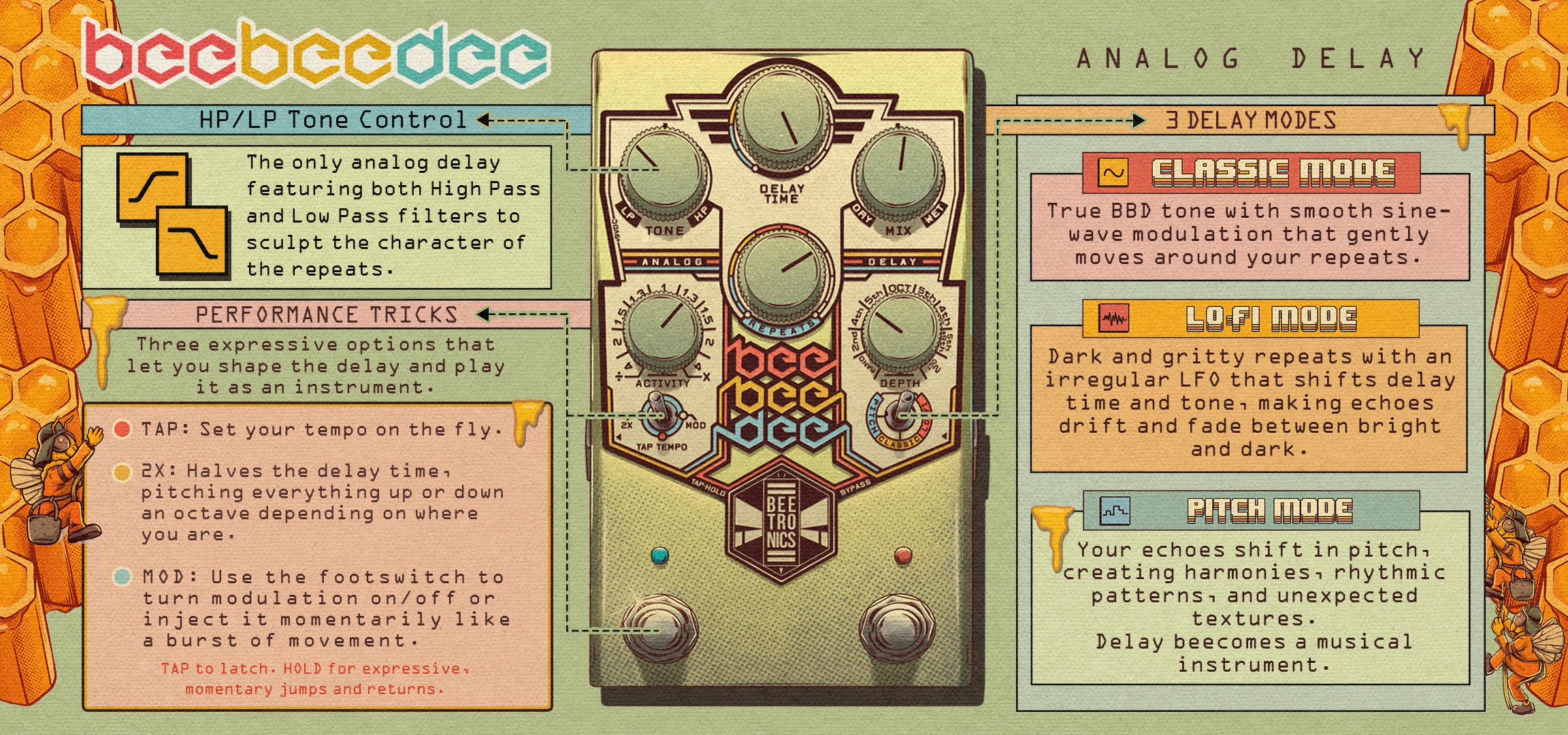 Beetronics Bee Bee Dee analogue delay effect pedal